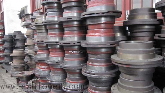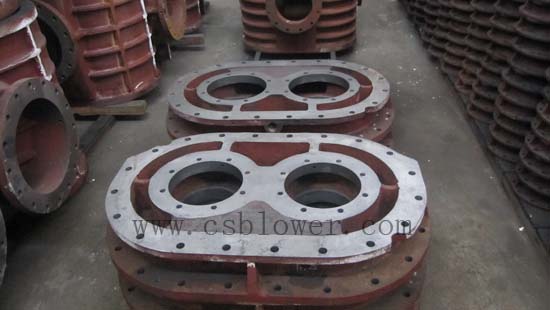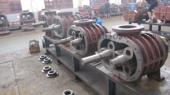 羅茨風(fēng)機(jī)機(jī)殼內(nèi)部裝有一對轉(zhuǎn)子部,轉(zhuǎn)子部是由葉輪和軸經(jīng)熱